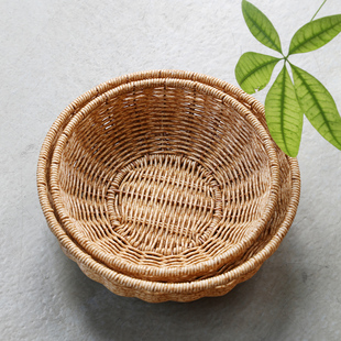 Kens日式 果盘手工仿藤编织家用客厅水果篮圆形零食收纳筐鸡蛋筐
