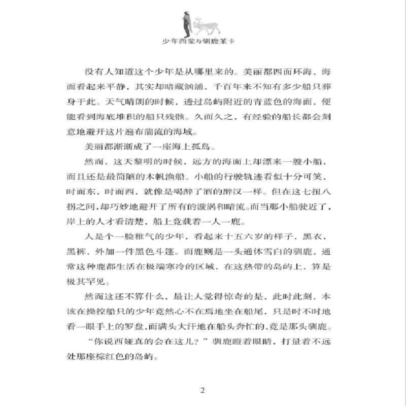 儿童小说 来到一个名为美丽都 讲述了少年西蒙和他 妹妹西娅 海上国度 伙伴——驯鹿莱卡为寻找失踪 少年西蒙与驯鹿莱卡