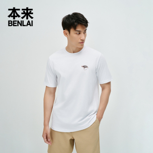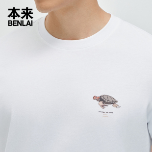 正肩短袖 新款 圆领上衣 趣味印花全棉t恤男夏季 本来BENLAI男士
