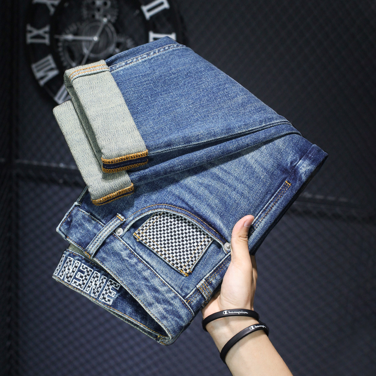 新款 百搭裤 不贴腿微喇裤 女时尚 子 显瘦刺绣牛仔裤 王家有鱼2025秋季