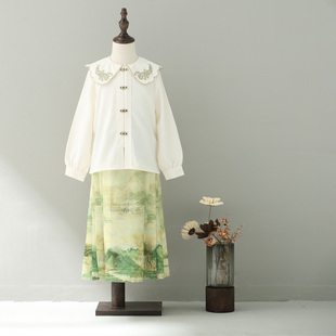 纯棉绣花上衣气质淑女刺绣衬衣 2025新款 初影杏色木耳领衬衫 女长袖