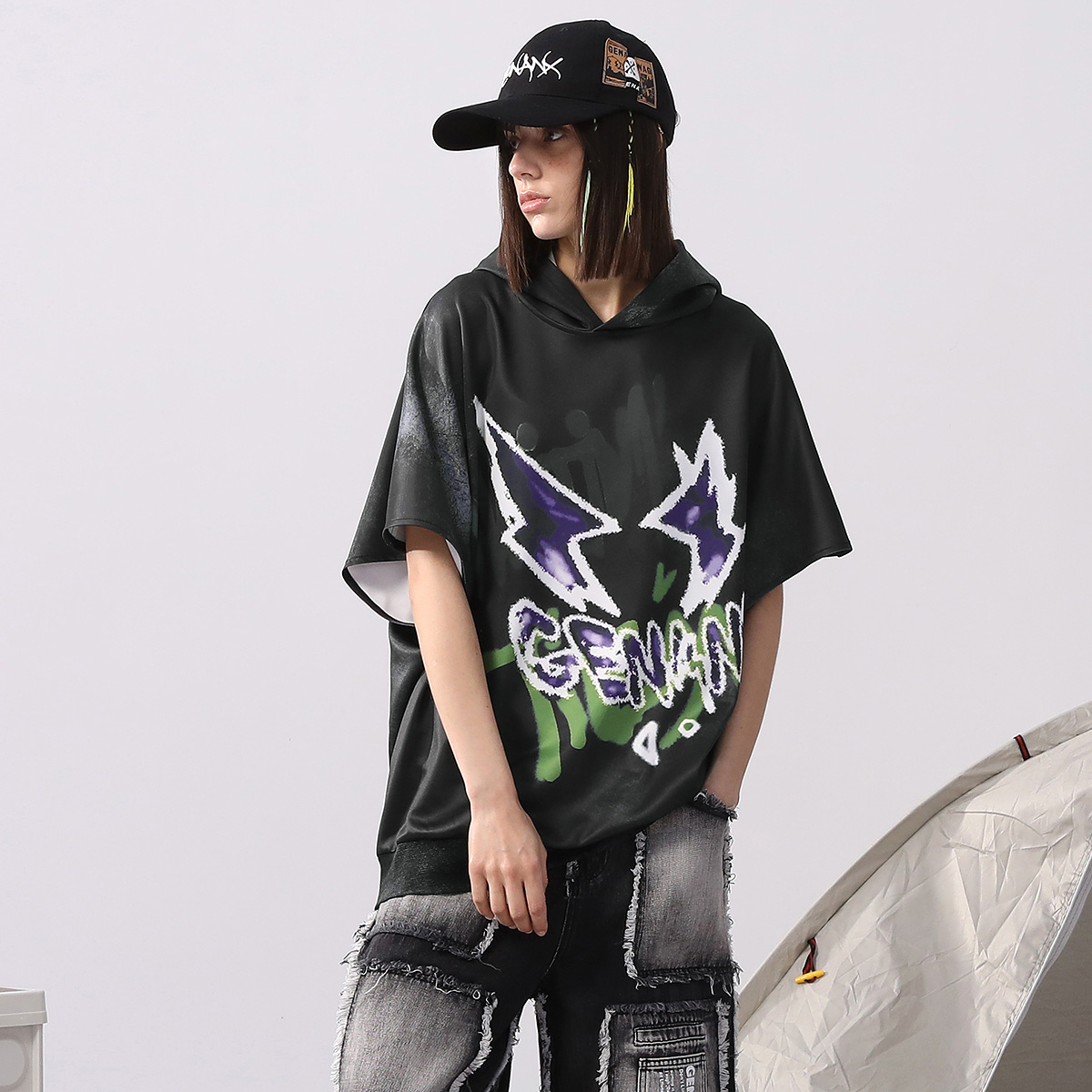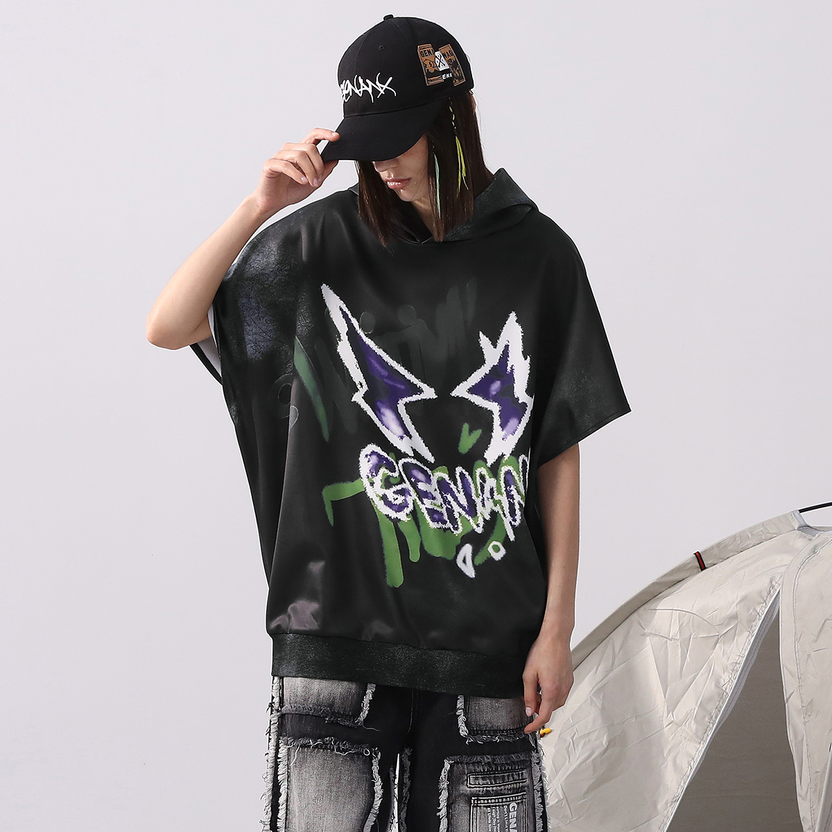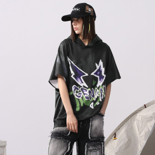 GENANX闪电潮牌夏五分蝙蝠袖 连帽太空棉情侣T恤男卓沅演唱会同款