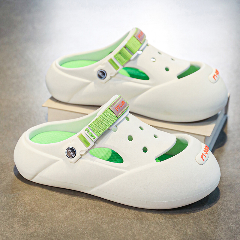 女款 包头海边半拖鞋 外穿夏季 厚底凉拖防滑沙滩鞋 女 2025新款 洞洞鞋
