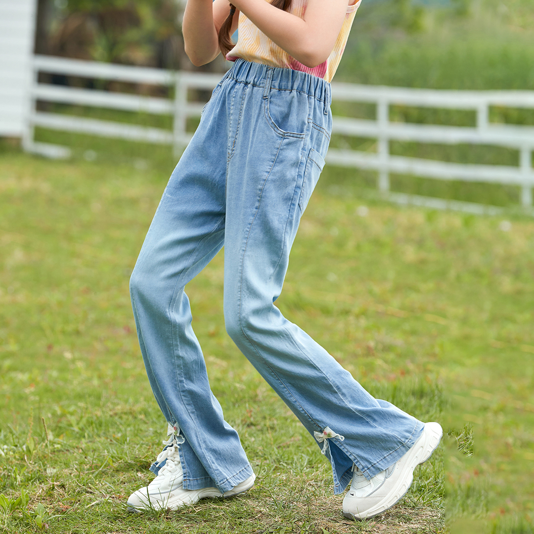 薄款 浅蓝色休闲长裤 牛仔裤 公主喇叭裤 外穿修身 女童夏季