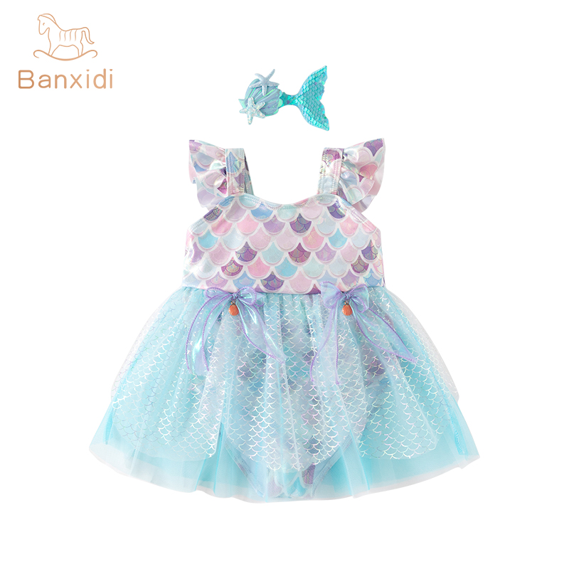 儿童游泳衣公主美人鱼夏季 班喜迪女童泳衣2025新款 洋气女宝宝泳装