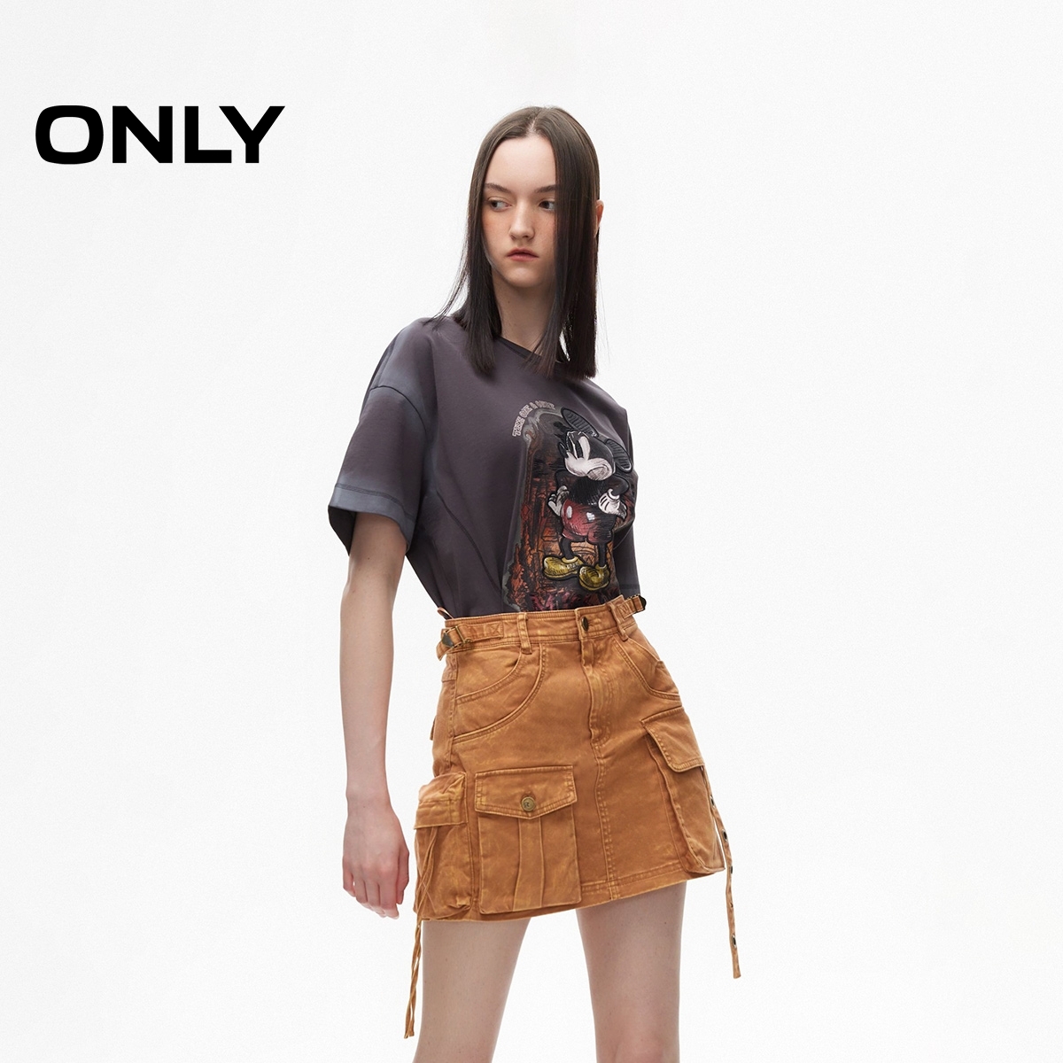 时尚 夏季 潮酷做旧水洗A字短裙半身裙女 ONLY奥莱