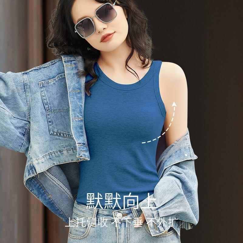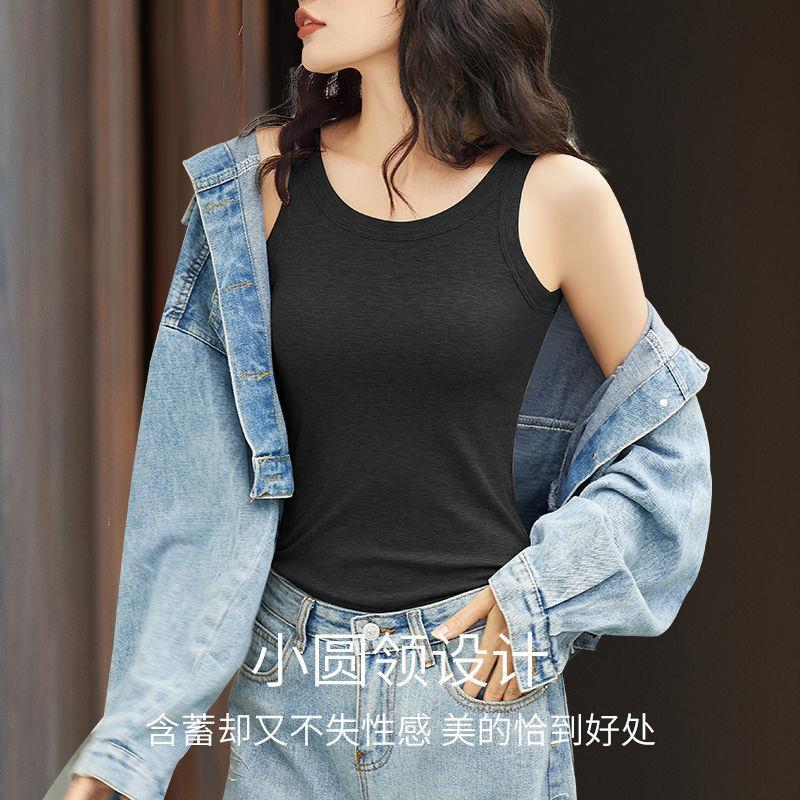 吊带背心女夏季 棉美背打底上衣 内搭带胸垫一体文胸外穿白色长款