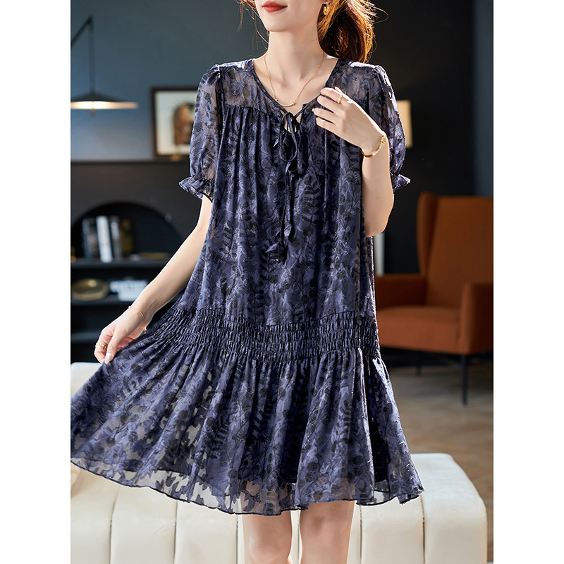 SNIDEL2025秋冬新品 印花茶歇连衣裙SWFO254139 优雅荷叶边小飞袖