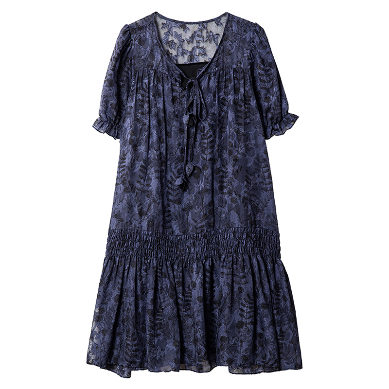 法式 LULUALWAYS 新款 25春季 浪漫收腰蕾丝提花连衣裙女 商场同款