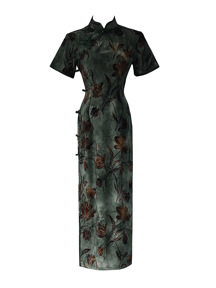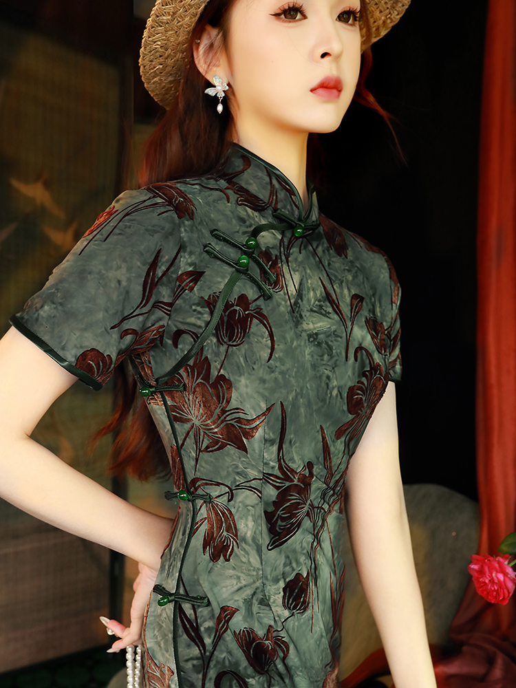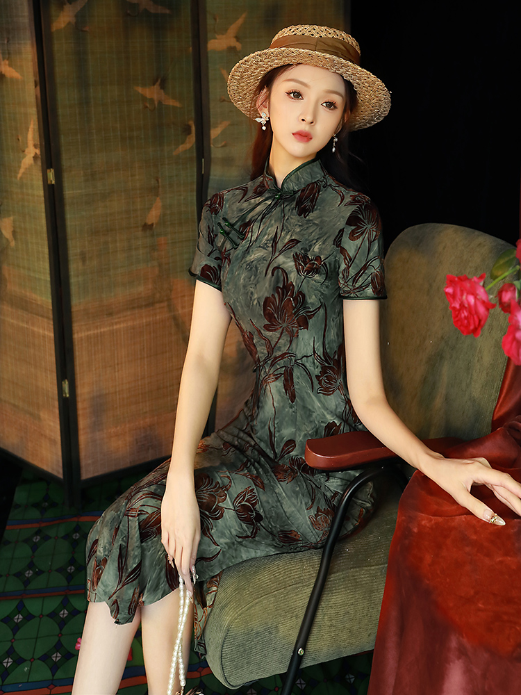 绿色旗袍新款 连衣裙 2024高考送考复古民国风旗开得胜妈妈气质长款