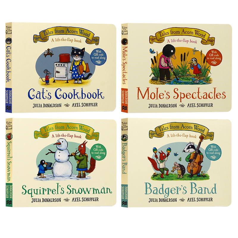 Wood儿童启蒙认知图画故事书纸板翻翻书Julia 橡树林故事集4册套盒英文原版 Acorn from Donaldson咕噜牛同作者 绘本Tales