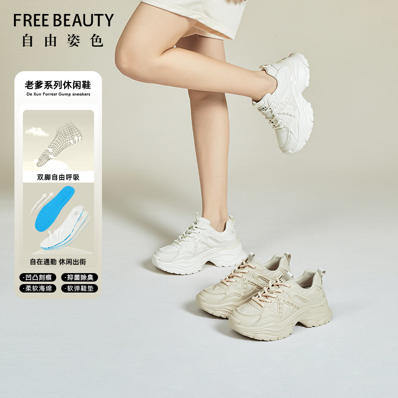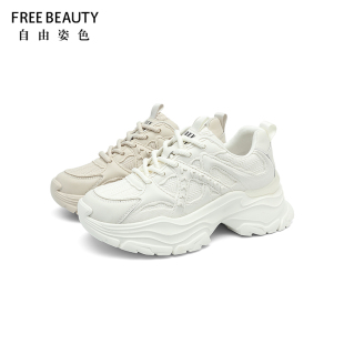 休闲运动鞋 自由姿色厚底老爹鞋 轻便跑步时尚 增高小白鞋 女 春秋季