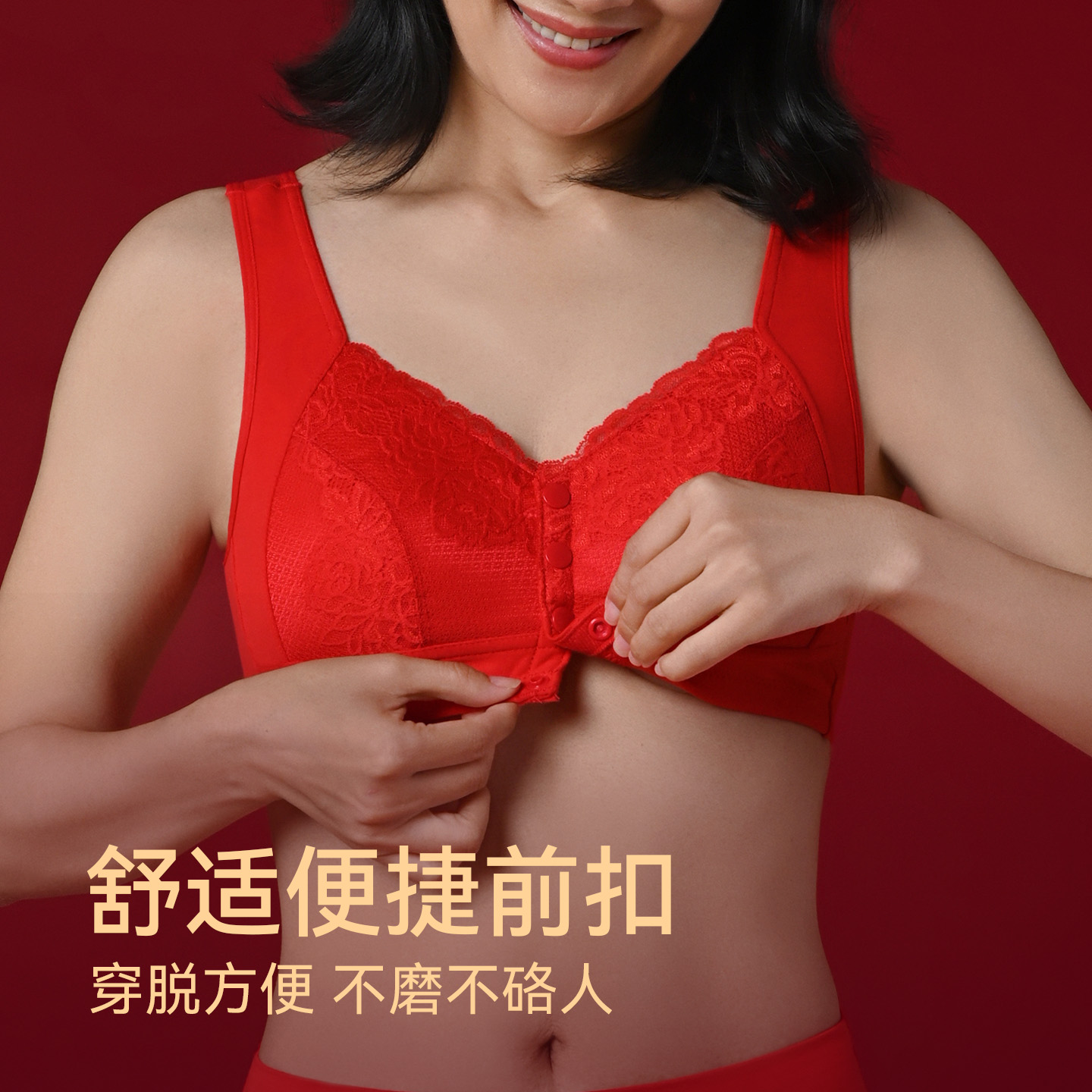 马年 红色中老年人前扣文胸大红纯棉内裤 妈妈本命年内衣套装 女大码