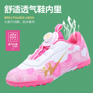 双星儿童足球鞋 小学生女童碎钉男童女孩短钉免系带男孩足球训练鞋