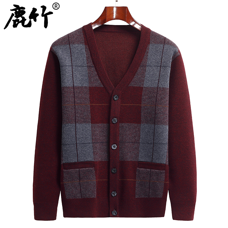 毛衣中老年人休闲打底衫 爸爸上衣春秋款 针织开衫 宽松大码 中年男士