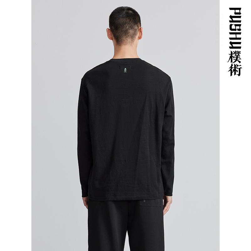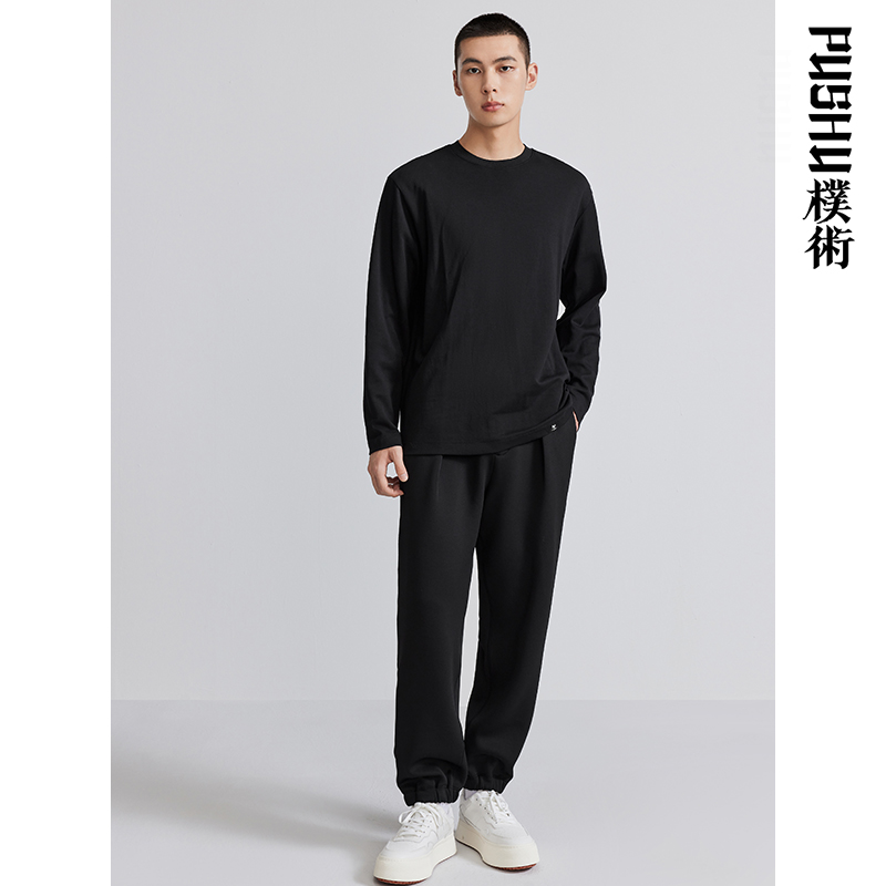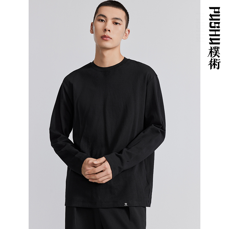 春秋季 圆领长袖 新款 单穿卫衣修身 T恤 黑色痞帅内搭打底衫 朴术男装