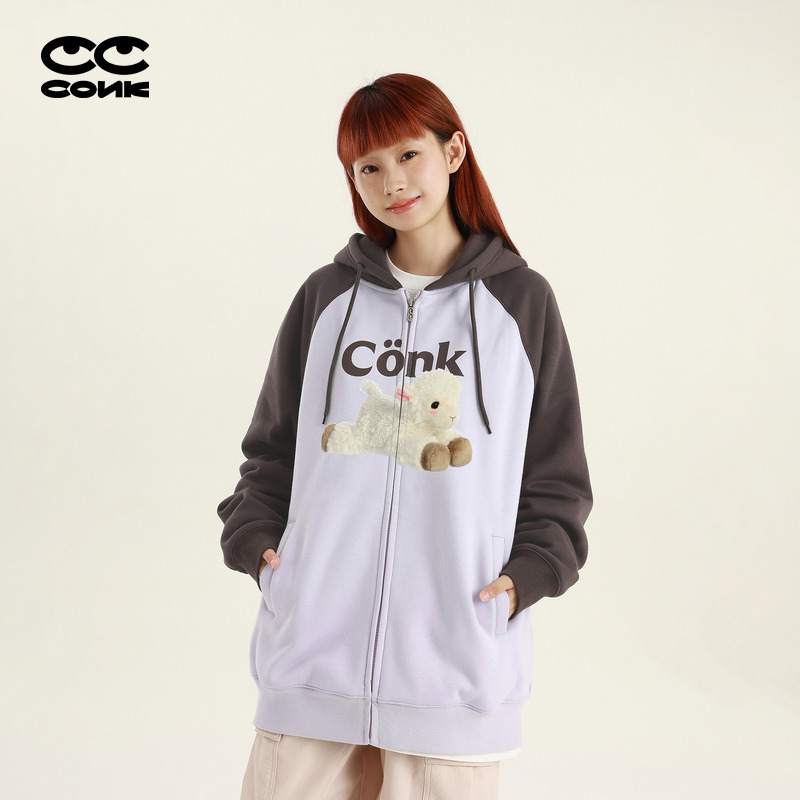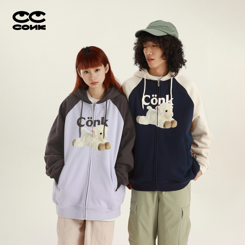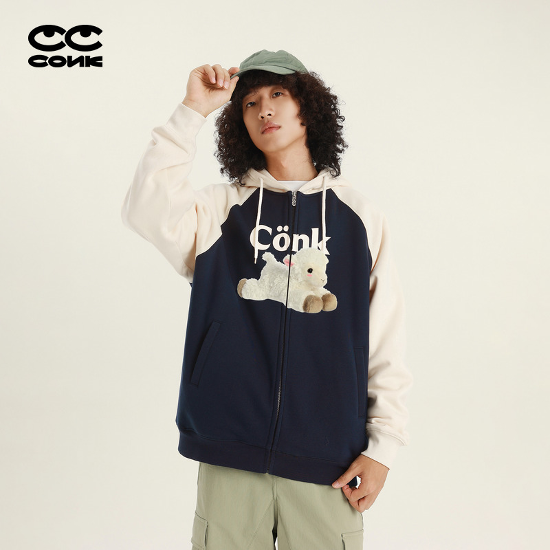 帽衫 宽松情侣插肩袖 潮牌重磅外套 连帽卫衣男秋季 conklab小羊开衫