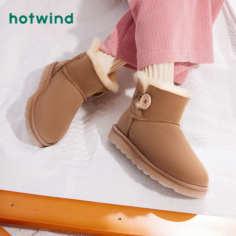 棉鞋 女士时尚 加绒加厚纯色套筒长毛绒雪地靴女 新款 热风2025年冬季