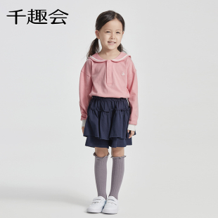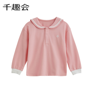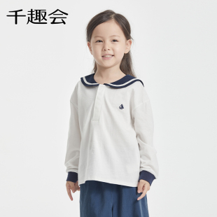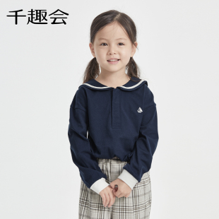 纯棉T恤女童清新海军领半开门襟衬衫 长袖 儿童25春秋款 千趣会童装