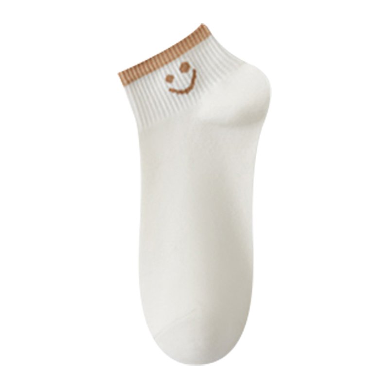 防臭女士袜子纯棉短袜春秋季 诸暨吸汗透气运动短筒袜可爱笑脸防滑
