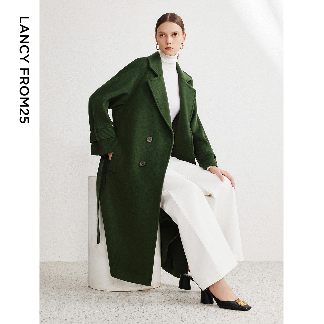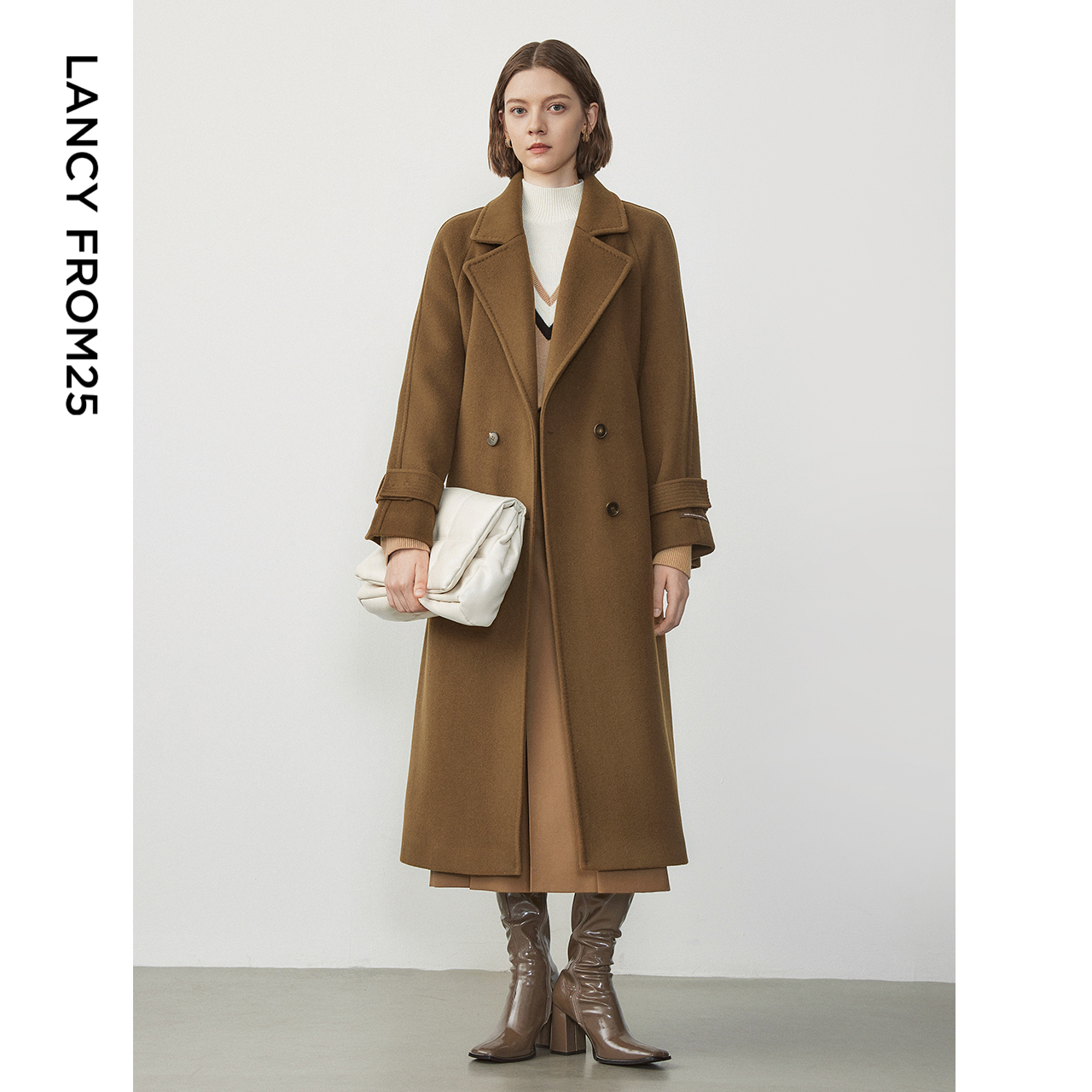毛呢外套冬季 气质修身 高级感通勤大衣中长款 朗姿纯羊毛双面呢法式