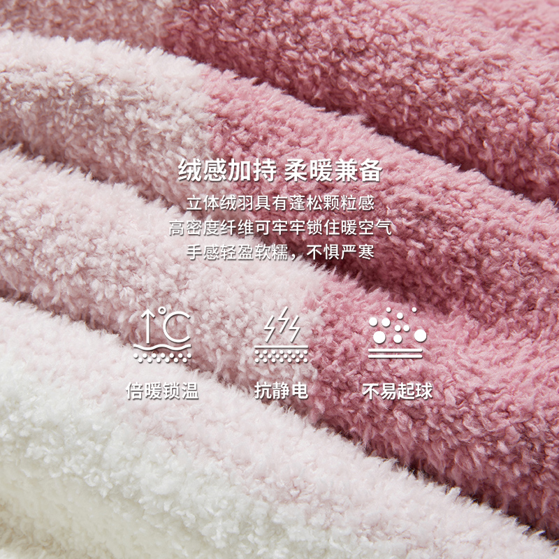 渐变条纹可外穿 三枪秋冬情侣睡衣女半边绒家居服男士 抗静电