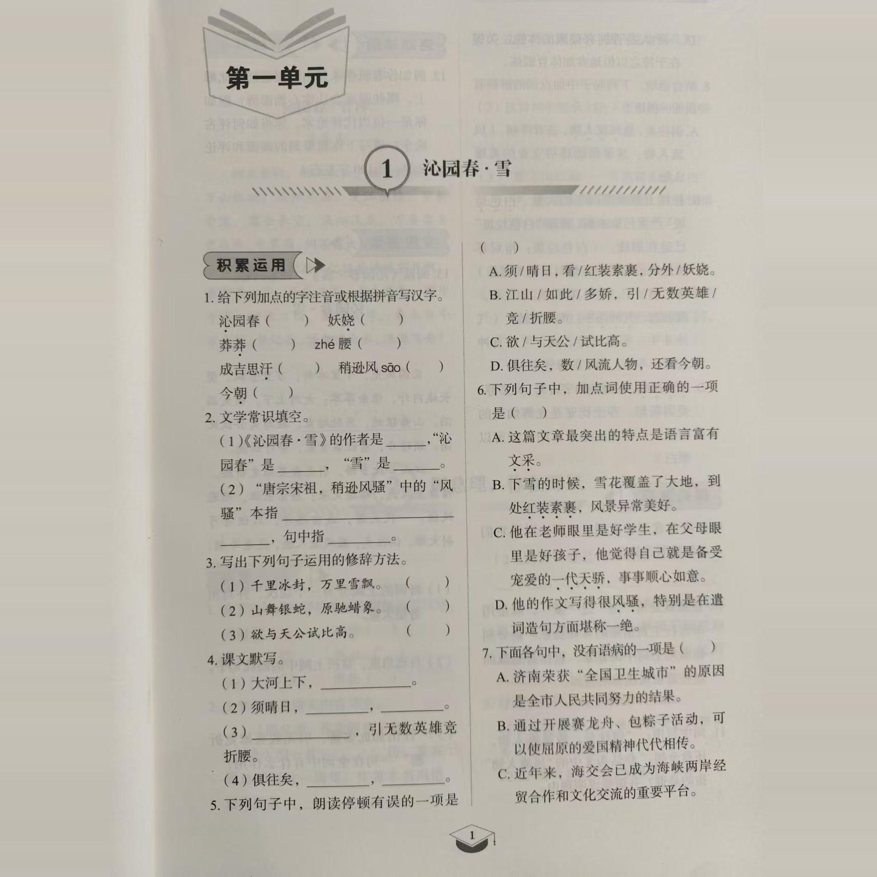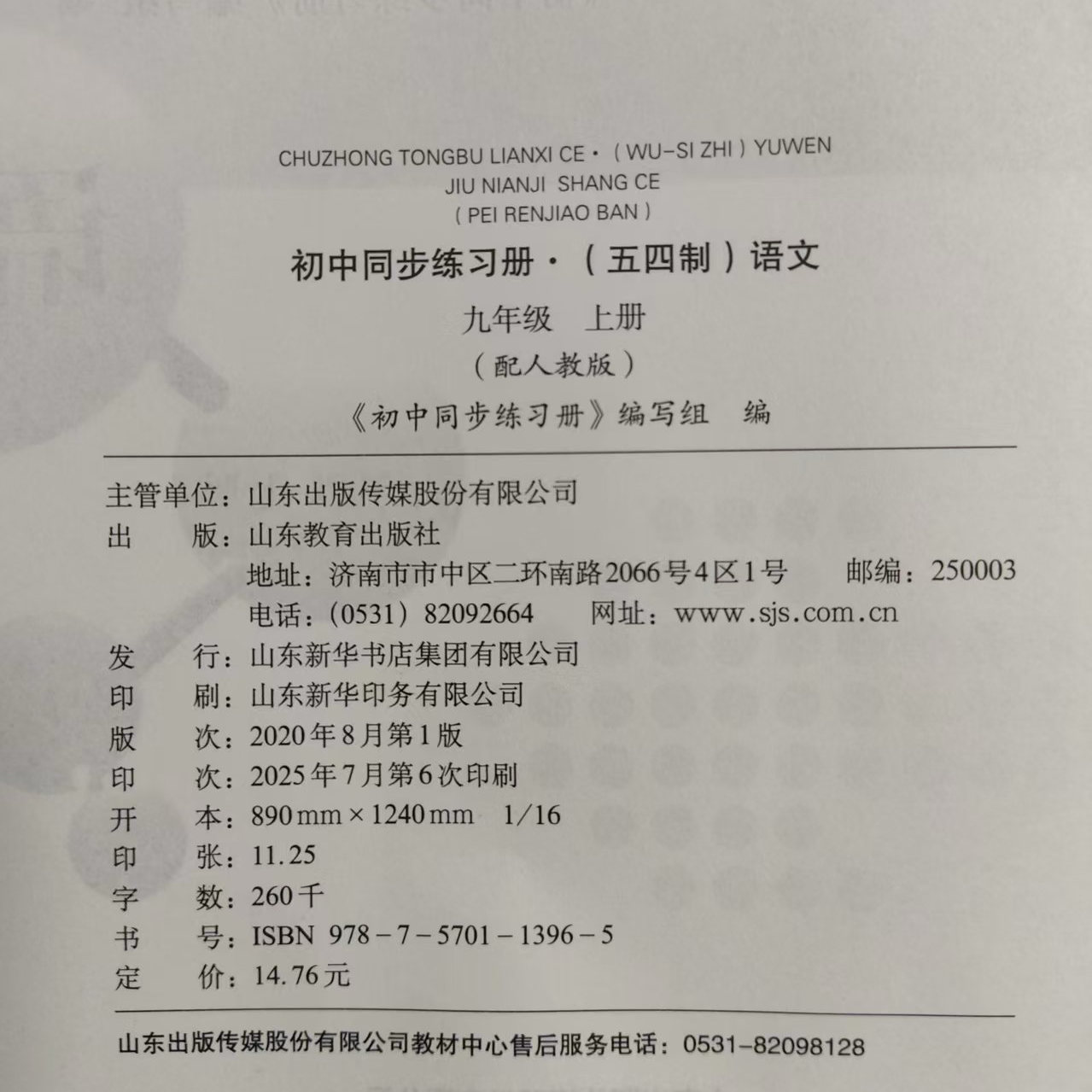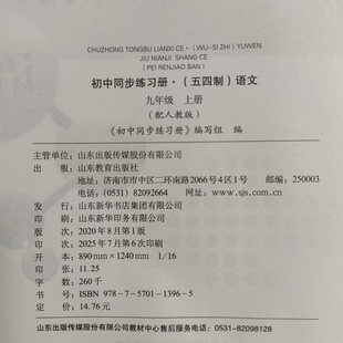 2025秋五四制人教版 初中同步练习册语文九年级上册山东教育社54制初四9年级语文上册同步配套练习册配人教版