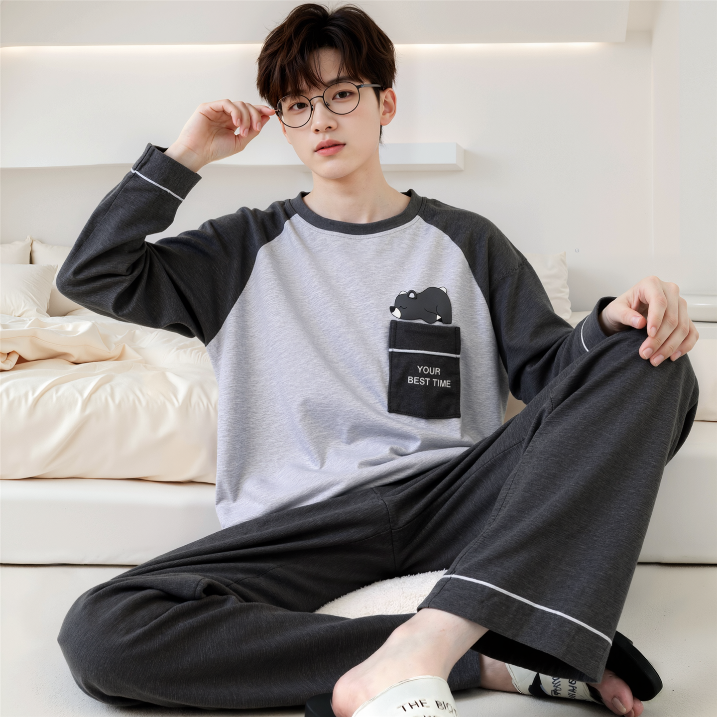 宽松休闲大码 春秋睡衣纯棉长袖 芬腾男士 家居服套装 范丞丞同款