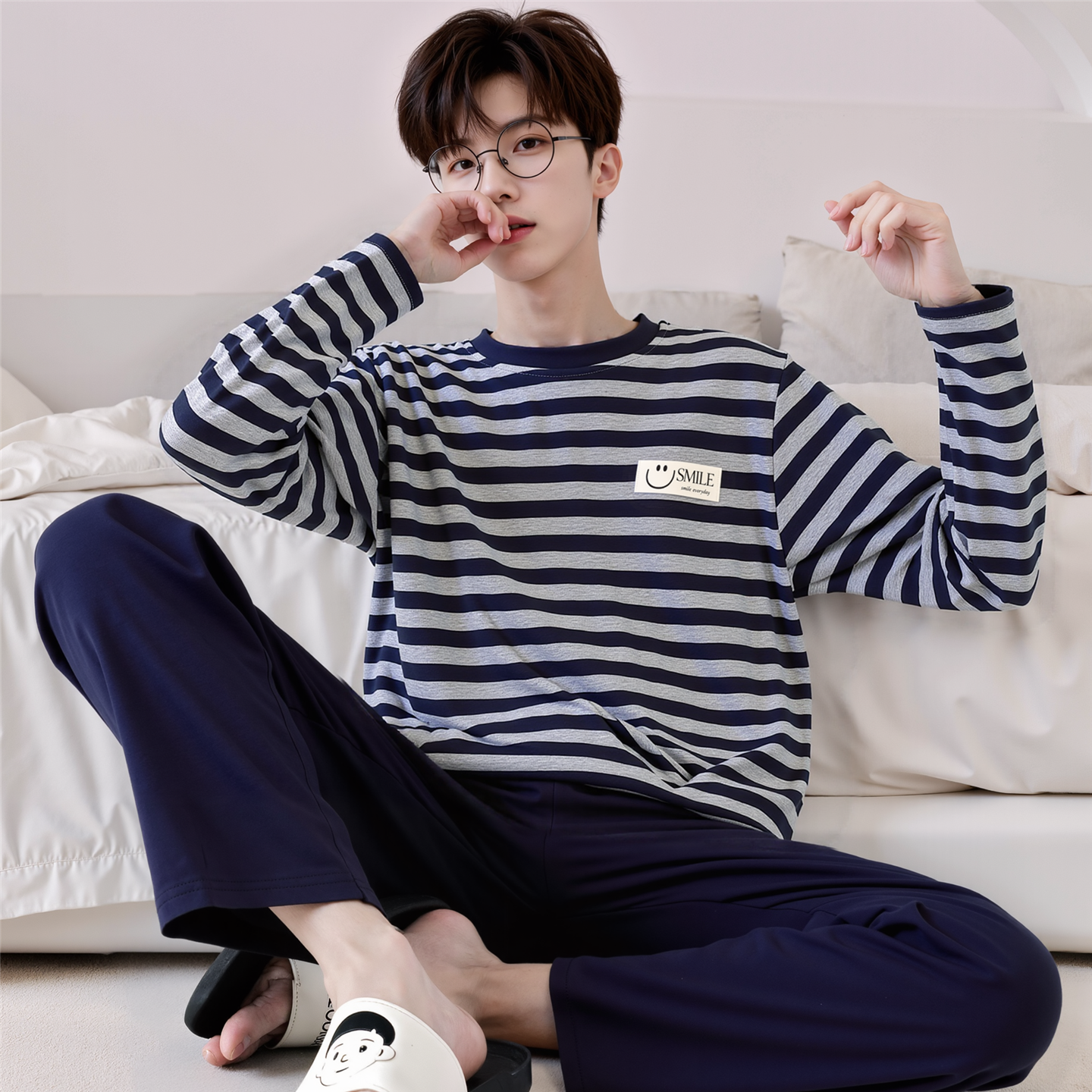家居服套装 男士 青少年学生男孩大童2025年新款 纯棉长袖 睡衣春秋款
