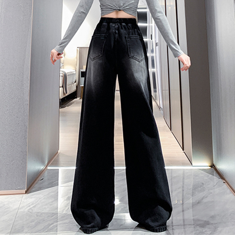 高腰梨形身材直筒宽松拖地裤 超大码 2025新款 女士早秋季 阔腿牛仔裤