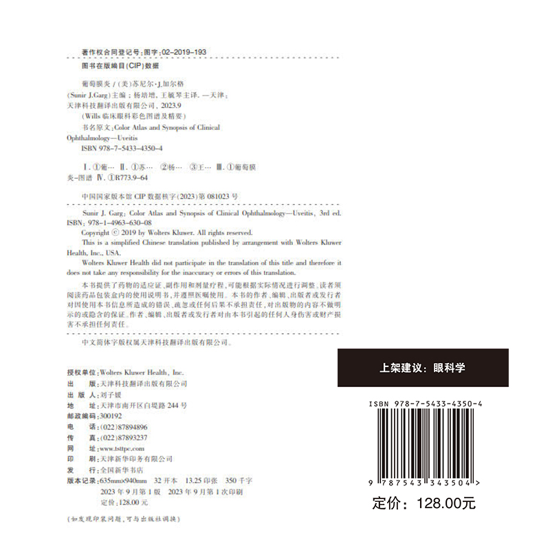 入门手册 社9787543343504 美 杨培增 王毓琴 主译 第3版 苏尼尔•J.加尔格 天津科技翻译出版 现货 眼底疾病 葡萄膜炎