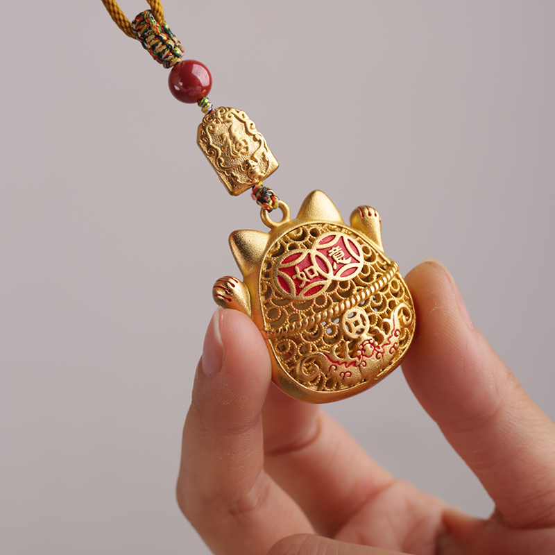 高档简约平安招财猫汽车挂件后视镜挂饰可爱猫咪吊坠女款 车上载 式