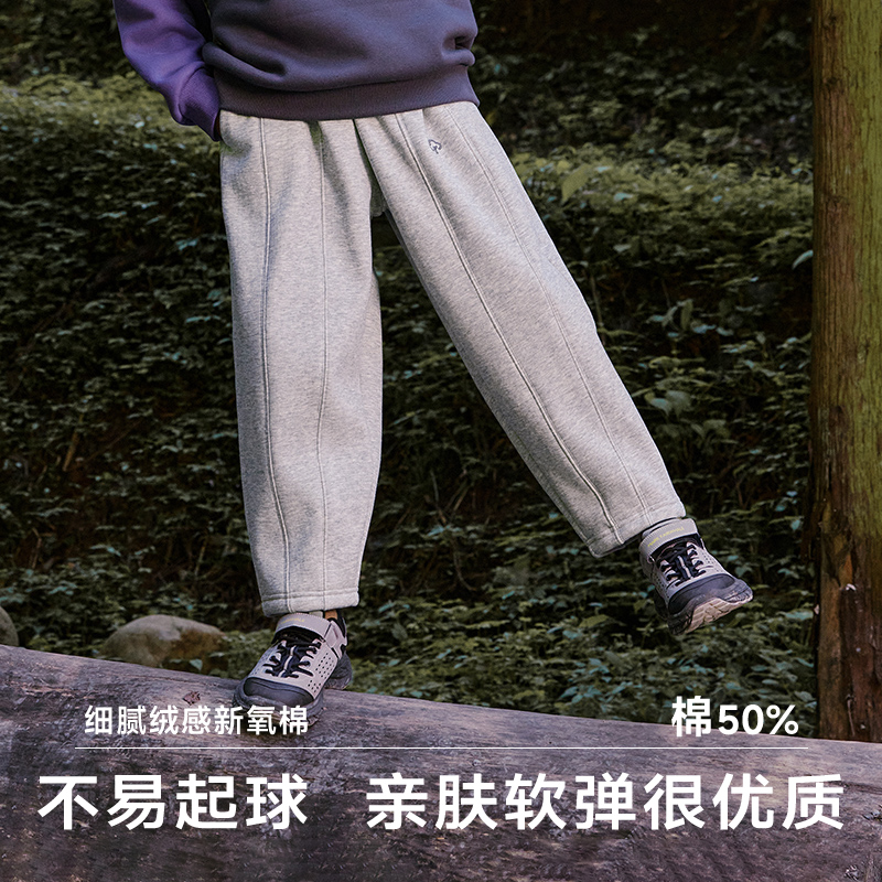 加绒街舞穿搭褶皱宽松休闲长裤 女秋冬季 子 灰色运动卫裤 自然涩美式