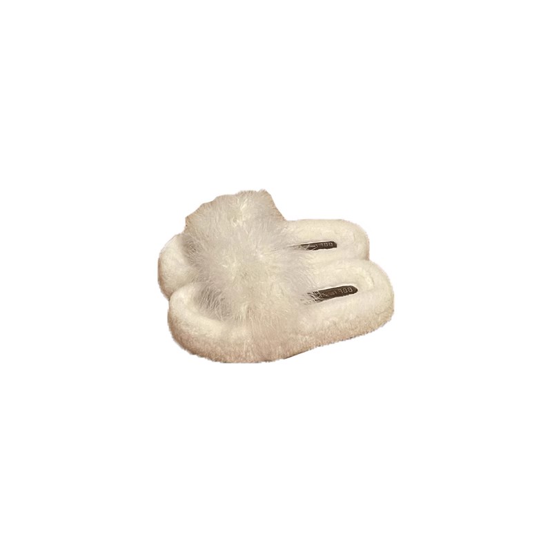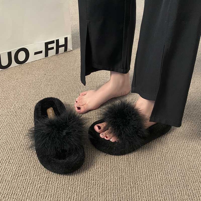 一字棉拖 百搭时尚 厚底网红鸡毛毛黑色毛毛拖鞋 女外穿2025春秋新款