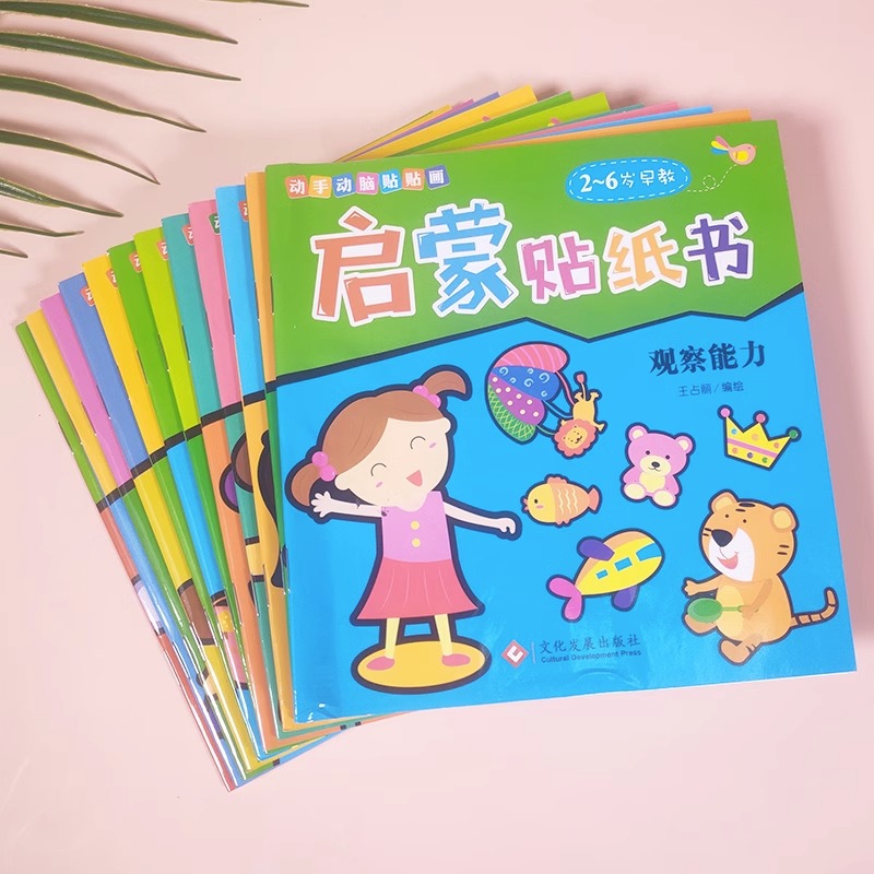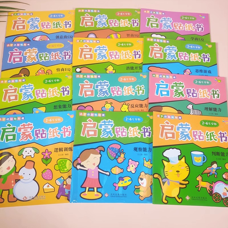 益智游戏贴画书 3岁宝宝左右全脑开发大书趣味动手动脑 幼儿启蒙知识库认知贴纸书12册 7岁儿童早教书 专注力训练书