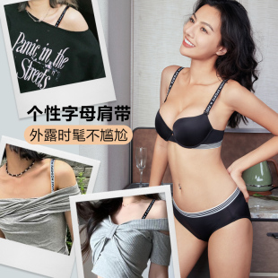 维密果冻条软支撑内衣无痕字母肩带美背背心式 文胸女 细肩带薄款