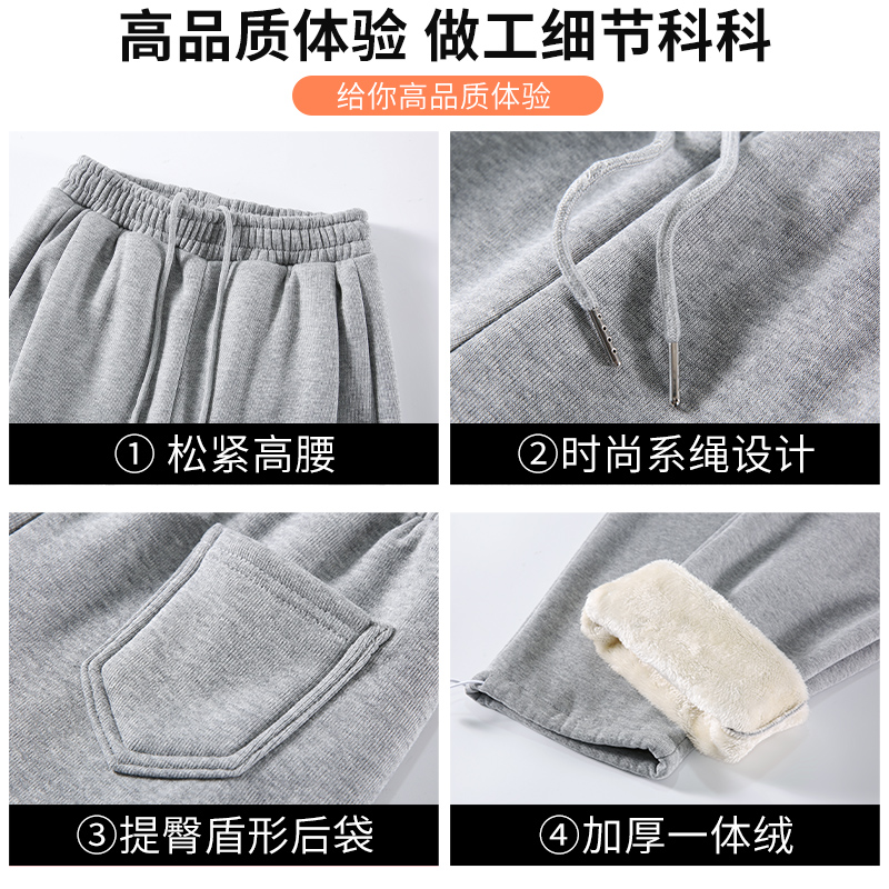 休闲卫裤 美式 女春秋冬加绒加厚高腰垂感宽松直筒阔腿裤 灰色运动裤
