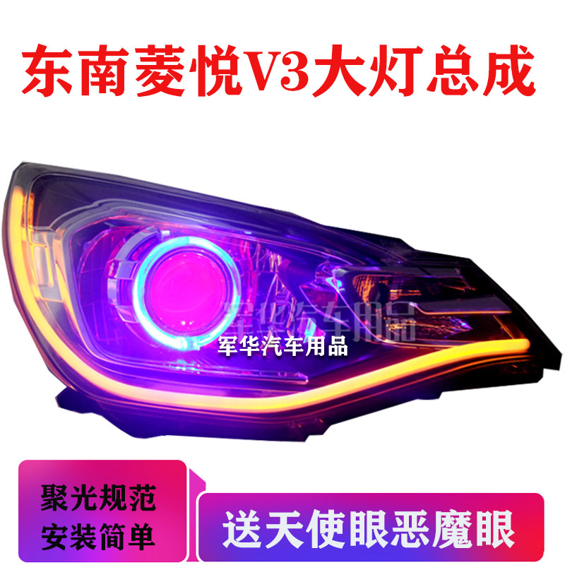 适用于新东南菱悦V3大灯总成改LED双光透镜hid天使眼恶魔眼日行灯
