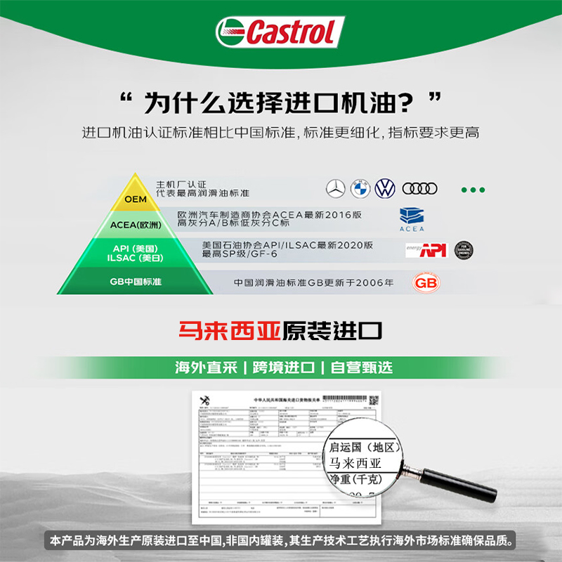 Castrol嘉实多极护0W 通用国六4L 40进口全合成机油汽车润滑油四季