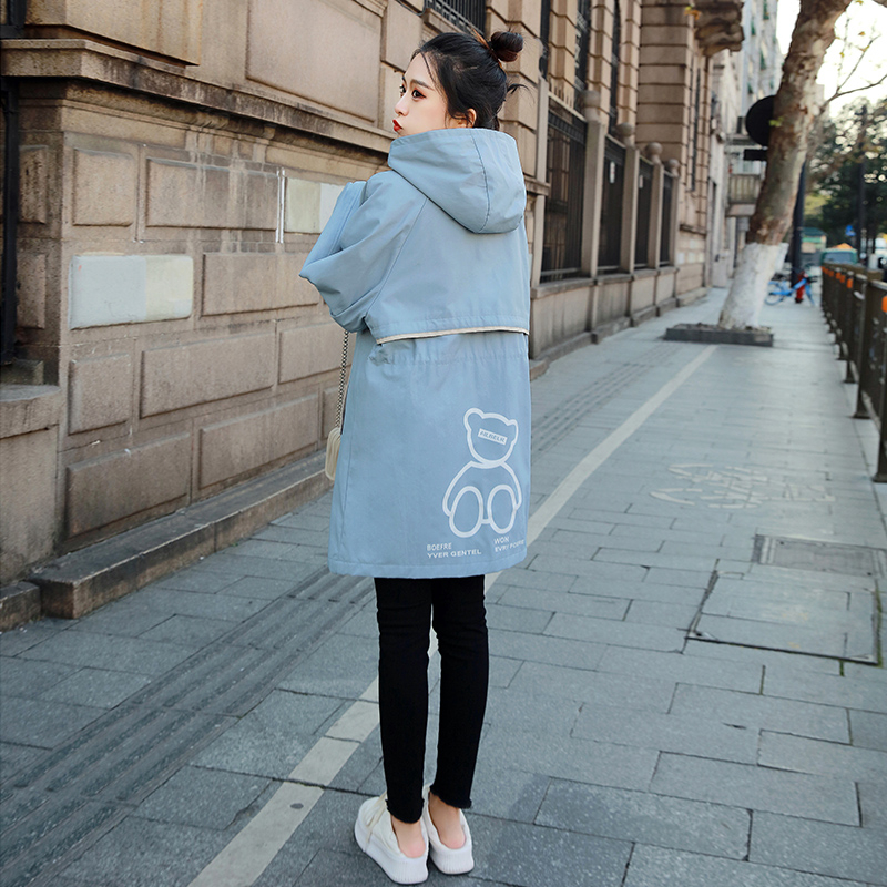 WANG游牧风卡其色连帽风衣外套女宽松中长款 LEDIM 明星同款