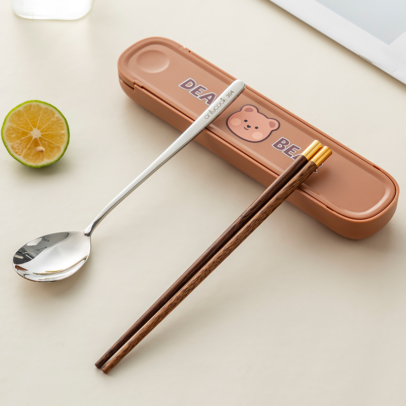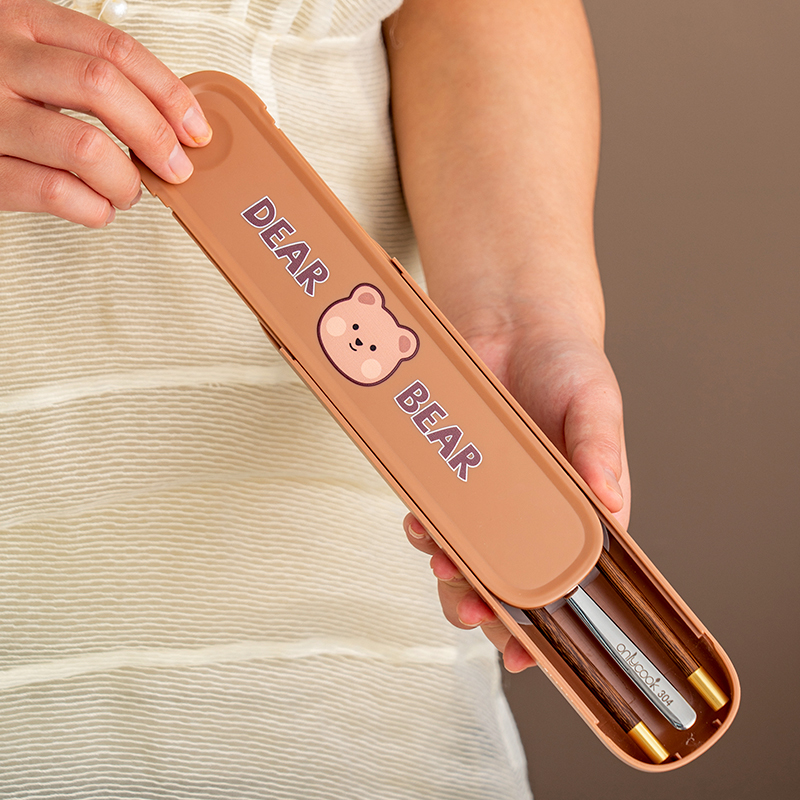 onlycook抗菌316L不锈钢学生便携餐具筷子勺子套装 个人专用收纳盒