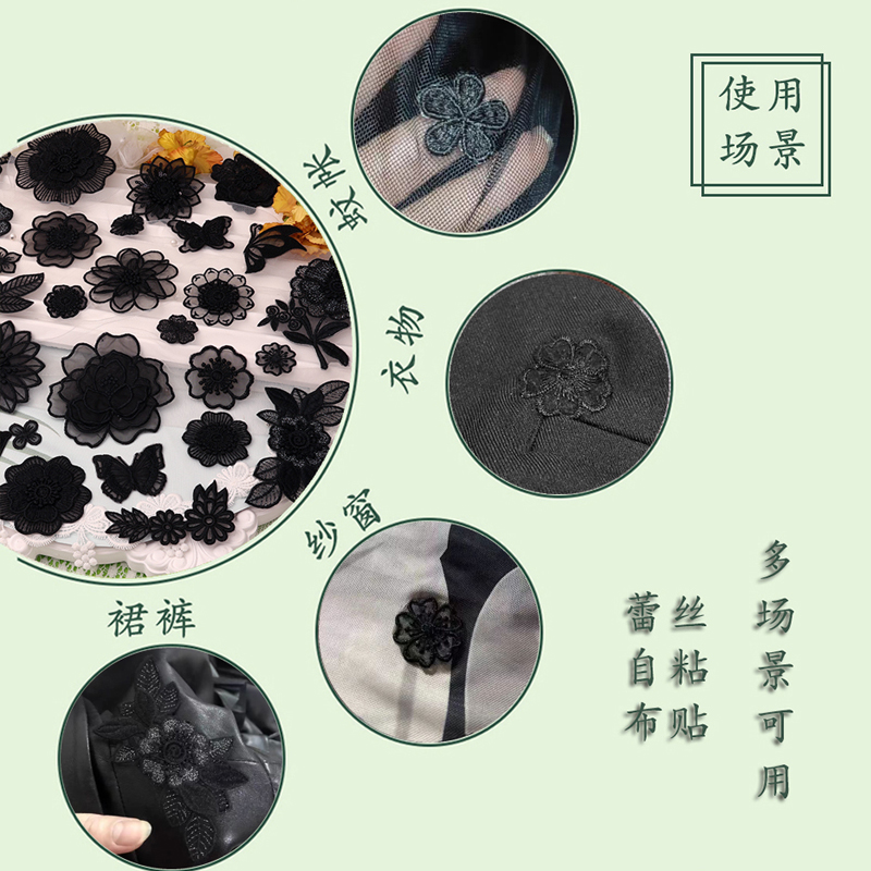 黑色蕾丝自粘欧根纱布贴衣服补丁贴裤 饰刺绣花朵蝴蝶贴花 子修补装