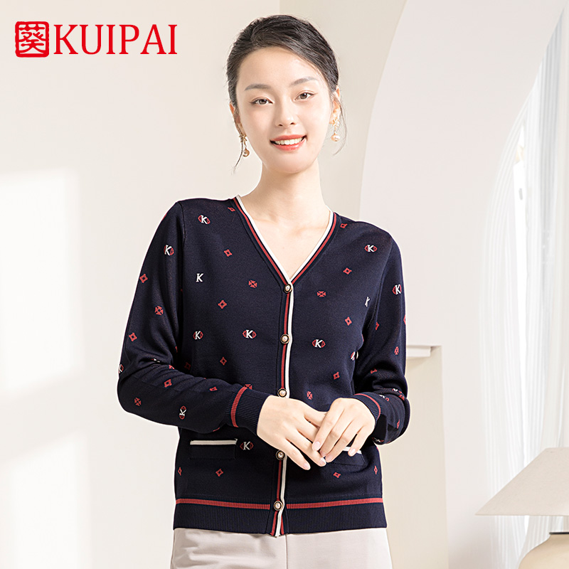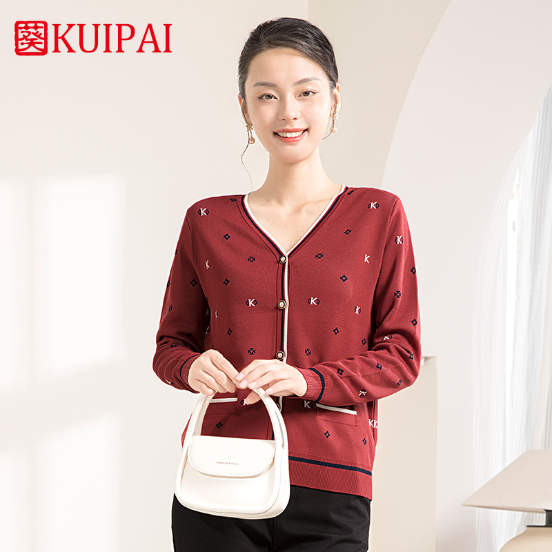秋季 长袖 新款 毛衫 V领体闲百搭 刺绣针织衫 葵牌中老年妈妈装