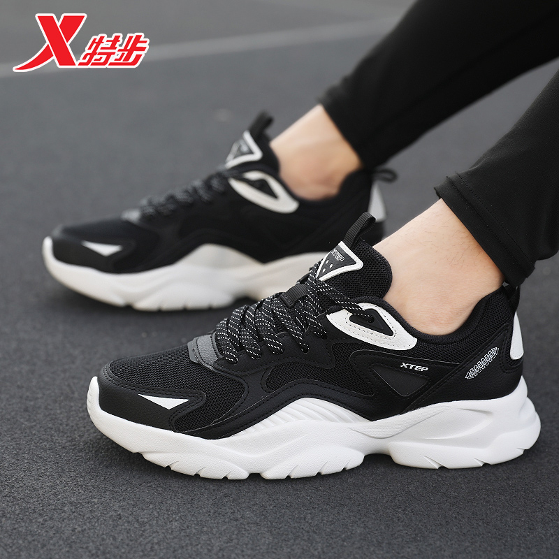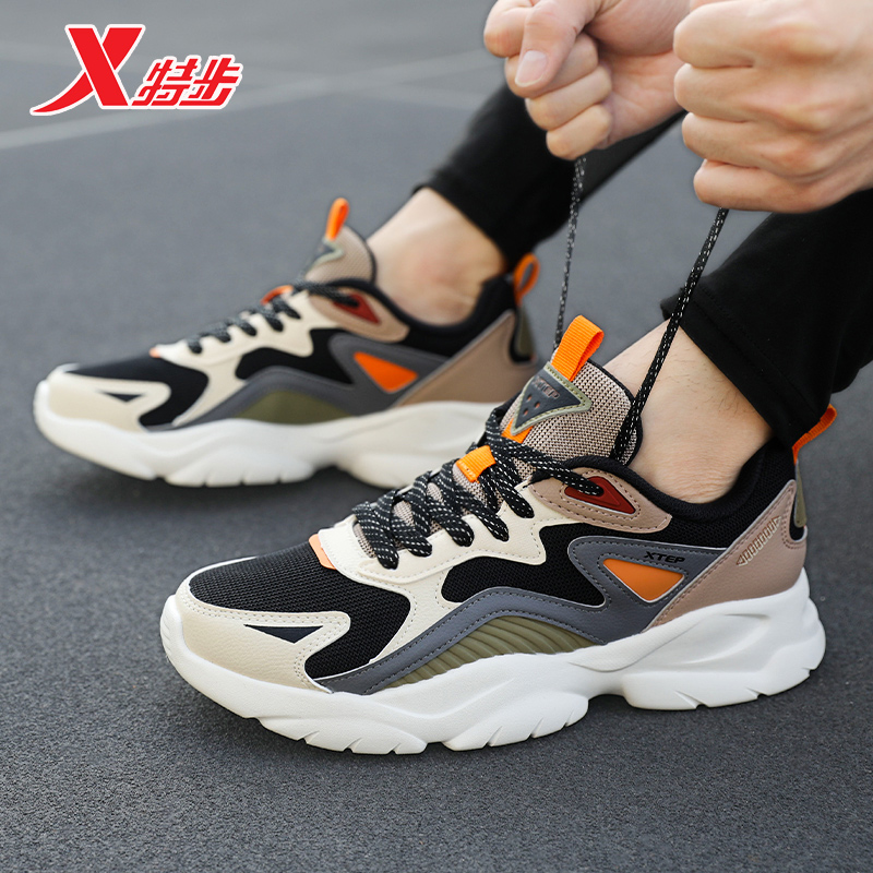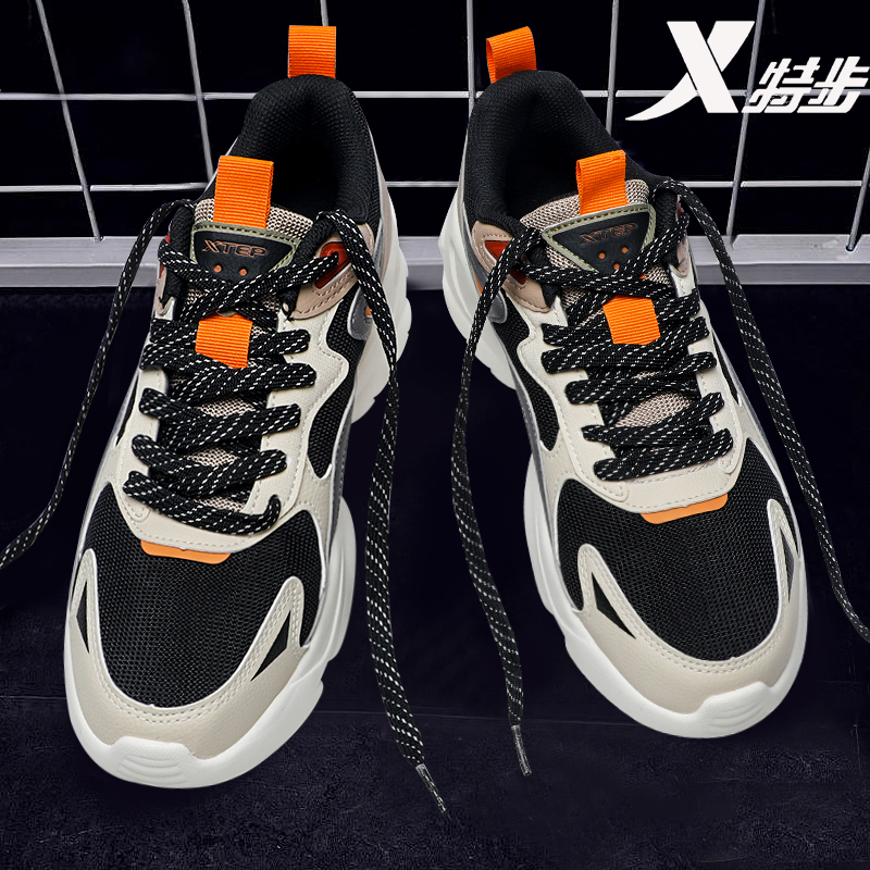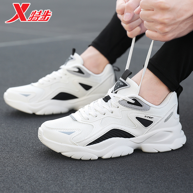 男鞋 子软弹平底鞋 厚底增高情侣休闲鞋 女鞋 革面 运动鞋 特步秋冬板鞋