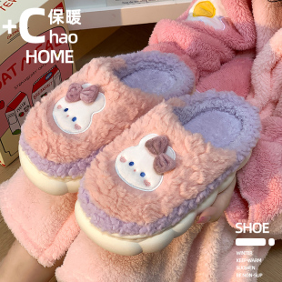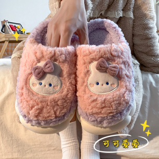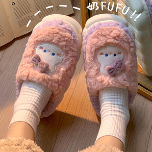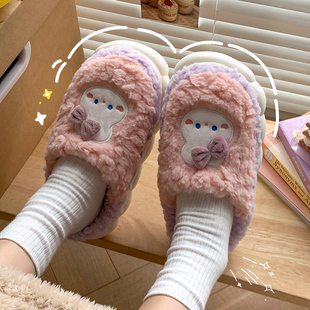 可外穿室内家居防滑厚底保暖加绒毛毛拖鞋 踩屎感棉拖鞋 男女秋冬季
