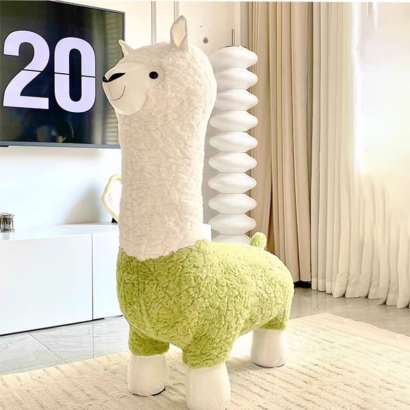 网红羊驼座椅可爱带万向滑轮动物卡通坐凳子客厅摆件乔迁生日送礼
