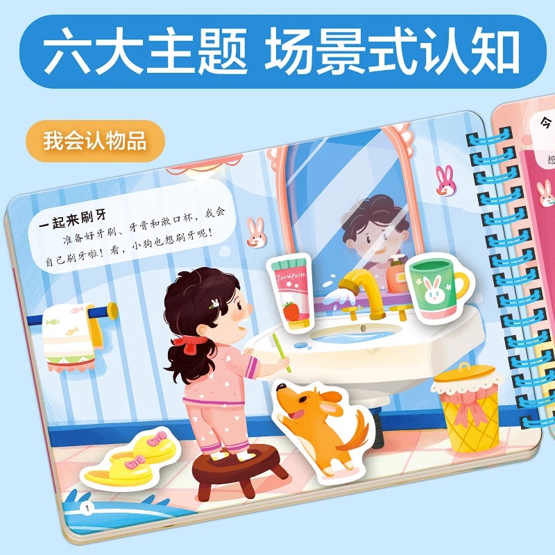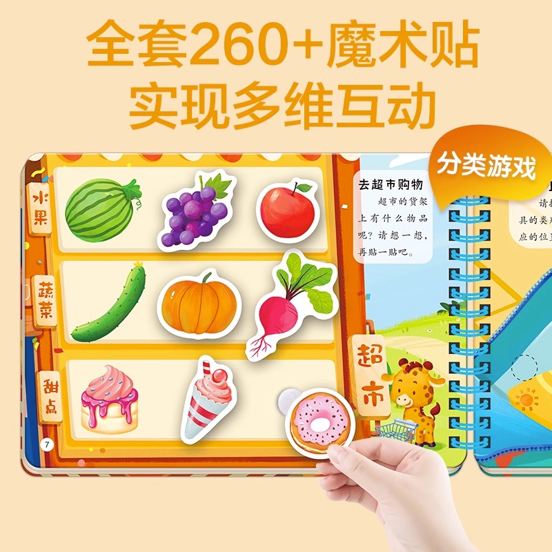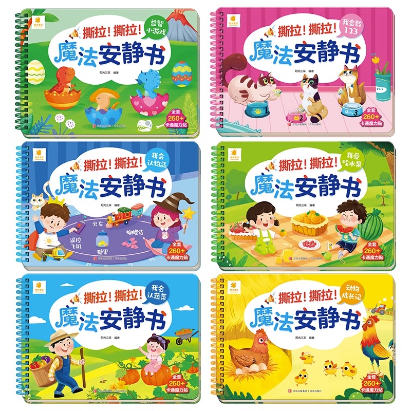 全6册魔法安静书第二辑 儿童益智安静撕撕书婴幼儿可啃咬撕不烂魔术贴3到6个月宝宝早教认识动物水果蔬菜幼儿启蒙认知益智玩具卡片