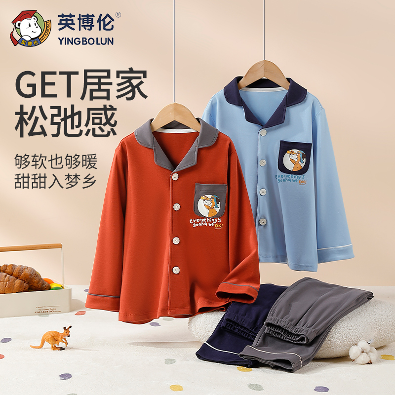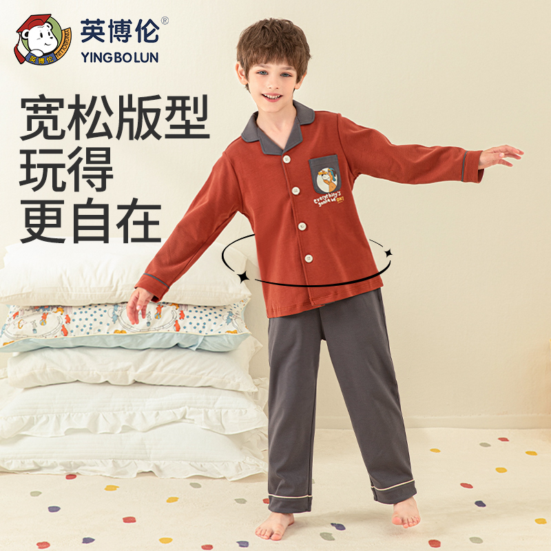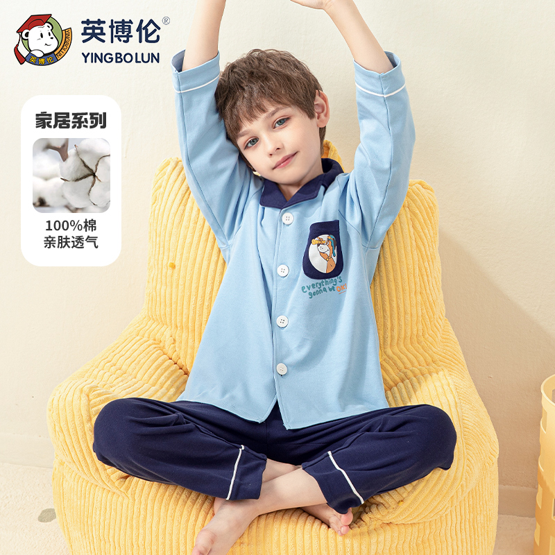 春季 开衫 全棉男童家居服 中大童男孩纯棉长袖 英博伦儿童睡衣春秋款