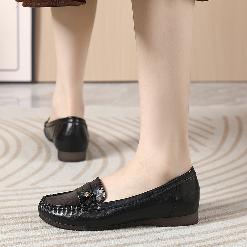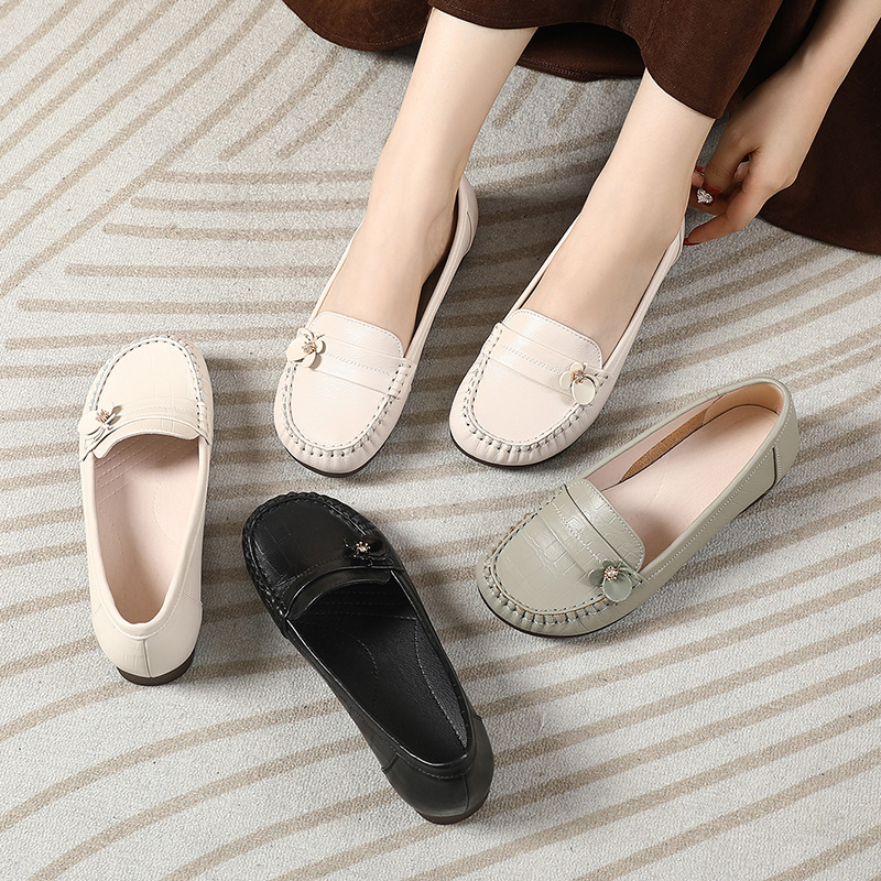 子平底单鞋 牛筋软底大码 女鞋 豆豆鞋 瓢鞋 春秋真皮鞋 四季 女2025新款