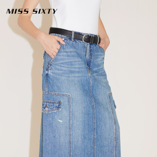 咖啡色高腰开叉牛仔裙女秋季 宽松洋气显瘦弹力A字中长半身裙 时尚